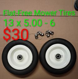 (2) 13x5.00-6 Flat Free Tires w/ Rims and Bearings for Lawn Mowers Zero Turn Tractor Wheels$30Henderson, NV