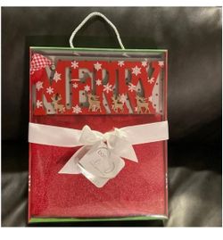 Born Loved Deluxe Gift Set w/Festive Plush Red Baby Blanket & “MERRY” Wall Sign$20West Hills, CA