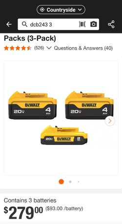 DeWalt Battery Kit, Includes Three Batteries: 4Ah (2) And 2Ah$130Downers Grove, IL