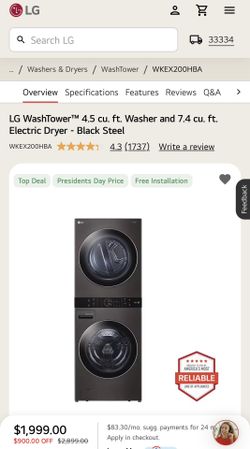 🔥 LG WashTower – Open Box Like New – Price Today Only $1,100! 🔥 💎 LG WashTower Washer & Electric Dryer – Model WKEX200HBA (Black Steel) 💎 Upgrade$1,299Boca Raton, FL