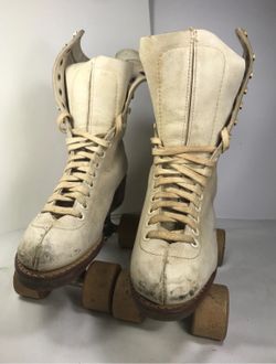 Vintage Chicago Roller Skate Shoe wooden 87SP Wheels Ladies sz 3 5 1/2 white $65Franklin, TN
