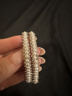 Gold Artificial Semi Precious Pearls Set Of Two Bangles $15Ashburn, VA