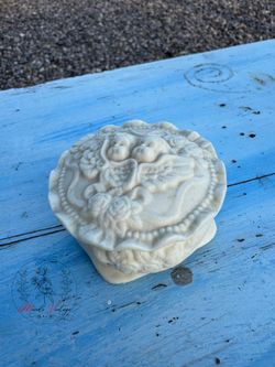 AUTOM China Cherub Trinket Box with Small Ruffled Lid, Decorated with Floral Des$15El Paso, TX