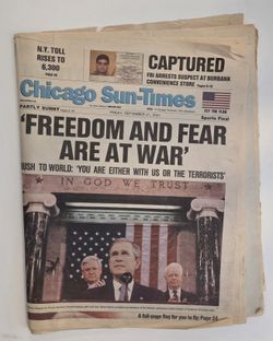 9/11 Newspaper Chicago Sun-Times 'FREEDOM AND FEAR ARE AT WAR"$20Chicago, IL