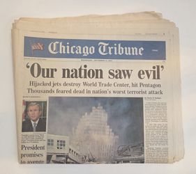 9/11 Newspaper Chicago Tribune Our Nation Saw Evil Sept.12,2001$20Chicago, IL