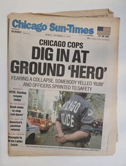 9/11 Newspaper Chicago Sun Times CHICAGO COPS DIG IN AT GROUND 'HERO'$20Chicago, IL