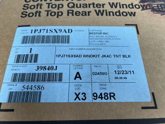Jeep Soft Top Quarter Windows, SoftTop Rear Window, 1PJ71SX9AD Jk4c Blk 2011-2018. 4 Door$150Baltimore, MD