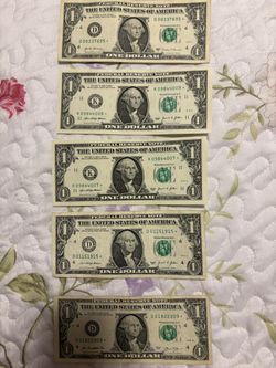 5 Billetes De Un Dólar Con Estrella .Perfecto Estado De Conservación$1Hialeah, FL