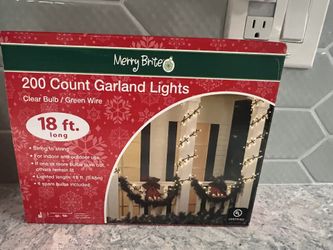 Merry Brite Garland Christmas Lights 18 Ft./200 count indoor/outdoor Clear With Green Wire$10Boca Raton, FL
