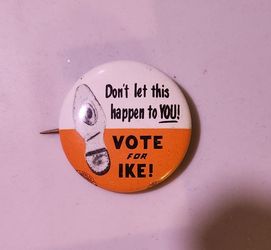 Vintage Political Pin Button "Don't Let This Happen To You! Vote For IKE!"$15Kent, WA