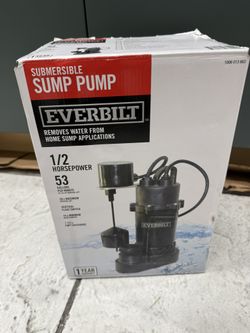 EVERBILT - Submersible SUMP PUMP 1/2 HP Vertical Float Switch -53 GPM$130East Los Angeles, CA