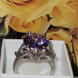 #2454, STUNNING SILVER PLATED RING, COCKTAL RING SIZE 6, CRISTAL STONES, PURPLE AND CLEAR.$49Florence, KY