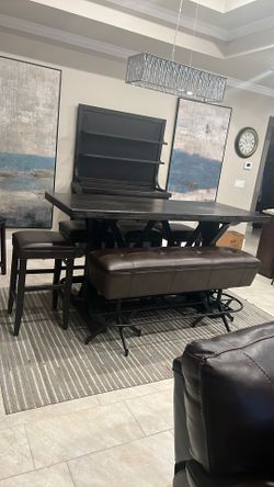 Dining Room Pub Style Set With 4 Stools & Bench, With Beautiful Matching Buffett, Dark Brown $1,650Magnolia Square, FL