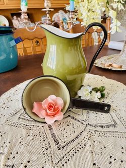 Antique Avocado Green Enamelware Pitcher And Pot-set$38Murrieta, CA