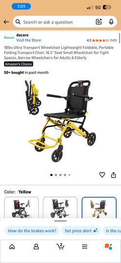 Wheelchair. 18lbs Ultra Transport Wheelchair Lightweight Foldable, Portable Folding Transport Chair, 16.2" Seat Small Wheelchair for Tight Spaces$75San Diego, CA