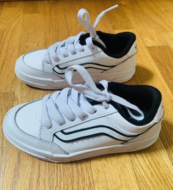 Vans Little Kids Hylane Shoe Size 1 US, Like New White Leather Sneakers w Black Accents $30Beaverton, OR
