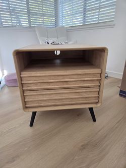 New Mid Century Fluted Wood End Table Charger Station Drawers Storage Cubby Nightstand$110City Of Industry, CA