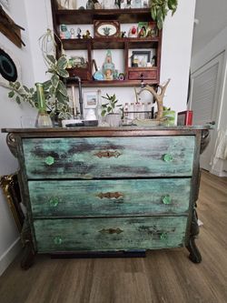 Antique Dresser Sliding Drawer Shelf Wood Vintage Steampunk Victorian Gothic Turquoise Unique Rare$80City Of Industry, CA