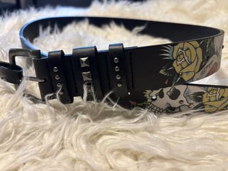 Ed Hardy Men’s Skulls and Roses Black Leather Rivet Belt Size 40 Brand New$24El Paso, TX