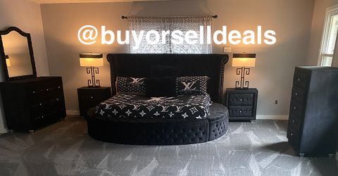 Black Suede King Bedroom Set In Excellent Condition $2,200Jonesboro, GA