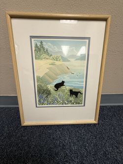 Lewis Spaulding black cat framed wall art Serigraph coastal scene $250Tacoma, WA