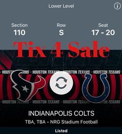 4 Houston Texans Vs Indianapolis Colts$1,400Houston, TX