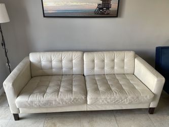 White Leather Sofa With 2 Blue Accent Chairs And 2 Tables $300Miami, FL