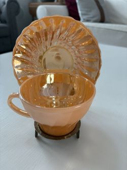 Collectible Vintage Fire King Peach Luster Swirl Teacup & Saucer$8Murrieta, CA