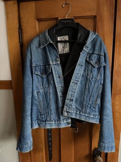Vintage Heavy Duty Leather motorcycle Jacket with a Levis jean jacket overcoat$70Chicago, IL