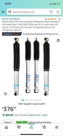 Bilstein B8 5100 Front and Rear Monotube Shock Absorbers for Dodge Ram 1 3500 with 0-2.5 Inch Front Lift and 0-1 Inch Rear Lift | Includes Tre$400Amarillo, TX