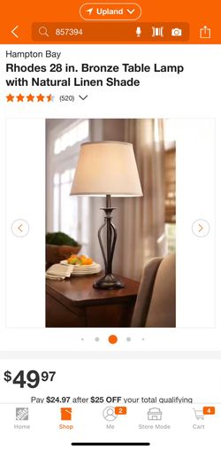 Hampton Bay Rhodes 28 in. Bronze Table Lamp with Natural Linen Shade$35Upland, CA