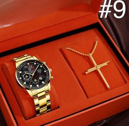 2-PCS Set Gold Luxury Quartz Watch Set With Golden Cross For Men$10Canyon Country, CA