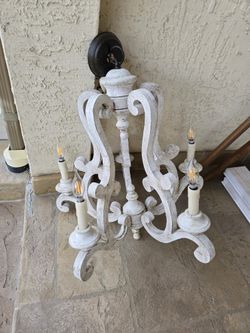 5 Light White Wood Vintage Look Distressed Chandelier works perfectly $40Castro Valley, CA