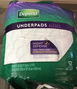 Depend Adult Night Defense 12 Count Under Pads Soft Triple Layer. $11Phoenix, AZ
