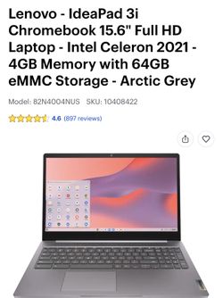 Lenovo - IdeaPad Зi Chromebook 15.6" Full HD Laptop - Intel Celeron 2021 - 4GB Memory with 64GB eMMC Storage - Arctic Grey new sealed box 2 year warra$160Woodbridge Township, NJ