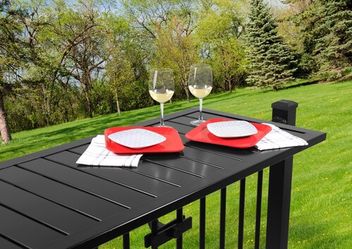 New Decorator aluminum deck rail table.$125Raleigh, NC