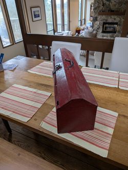 Antique vintage large red metal toolbox 33 inch long. Structurally sound.$35Seattle, WA