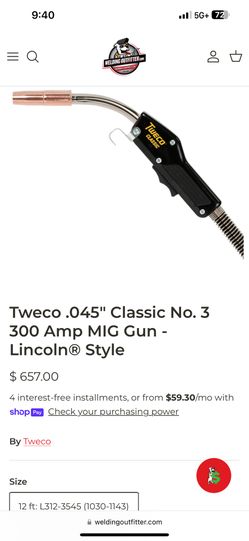 Tweco 0.45 Classic No.3 300 Amp Mig Gun Lincoln$550Seattle, WA