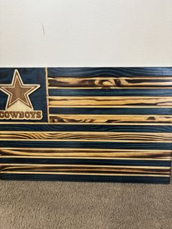 Dallas Cowboy Burn Wood American Flag 20x13” New Hand Crafted $60Interlaken, NJ
