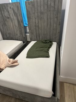Twin Size Tall Headboard Velvet Gray Bed Frame $130Brooklyn, NY