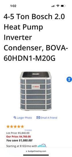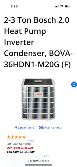 Bosch BOVA-60HDN1-M20G 4-5 Ton 20 SEER Heat Pump Inverter$2,599Rancho Cucamonga, CA