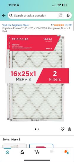 2 Pack Air Filters Size 16x25x1$10Concord, NC