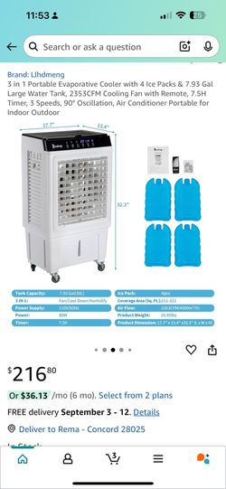 3in1 Air Conditioner 7.93 Gals $160Concord, NC