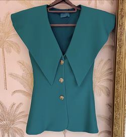 Jeanne Alexander Blouse Womens M Teal Green Collared Rhinestone Buttons$13Dallas, TX