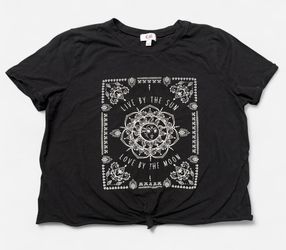 Women's Graphic Tee size L Black Sun & Moon Short Sleeve Crew Neck crop top$6Dallas, TX
