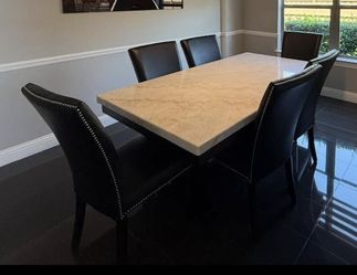 Marble-Top Dining Table with Black Upholstered Chairs$1,200Dallas, TX