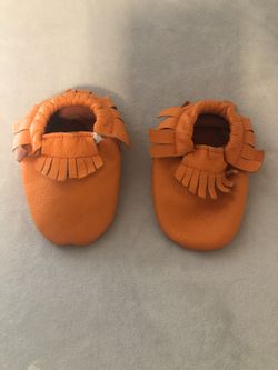 Baby orange moccasins - size 3$10Margate, FL