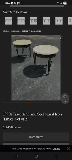 Kreiss 1990s Travertine and Sculptural Iron Tables, Set of 2$1,100South Gate, CA