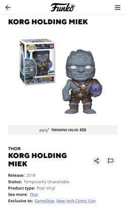Funko Pop! Korg With Miek From Thor Ragnarok 2018 Fall Convention Exclusive!$24Los Angeles, CA