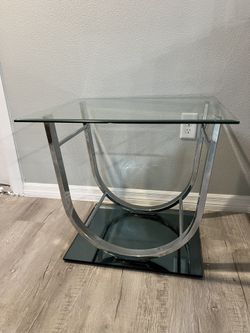 ‼️$50 Price Drop‼️ End Table Tempered Glass Top with U Shape Metal Frame, Clear and Chrome$45Sebring, FL